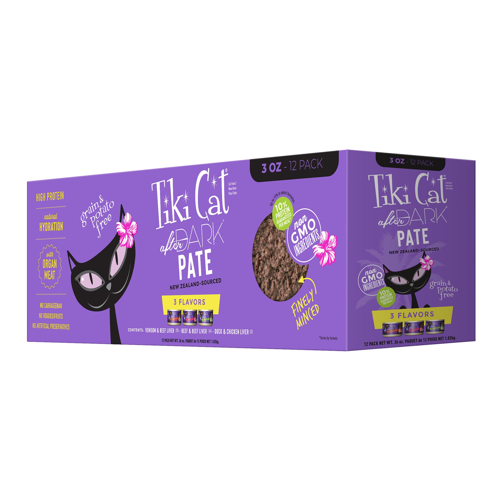 Tiki Cat After Dark Pate Variety Pack contains 3 delicious recipes. Venison Beef Liver Pate Beef Liver Pate Duck Chicken Liver Pate 95 MEAT and POULTRY - High protein wet cat food pate for the obligate carnivore. With over 95 meat real liver and no corn wheat or soy its the perfect high-protein diet for the born carnivore.